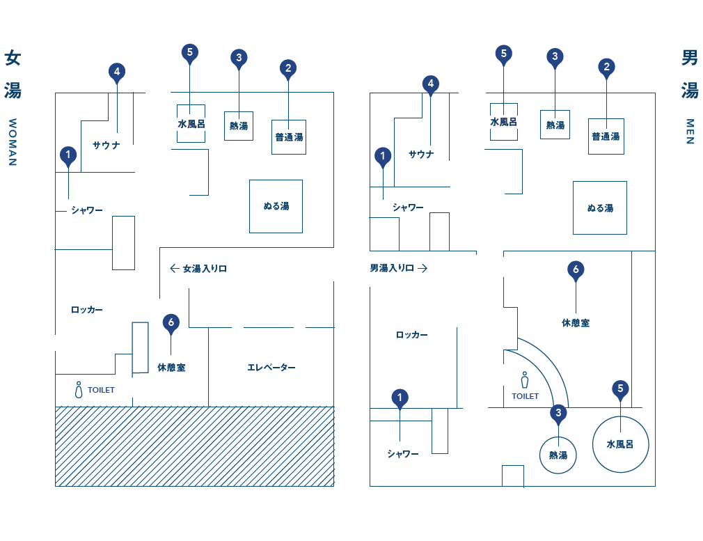 | 収容人数 【男湯】 | 20名 ※ロッカーが20個になります。 事前に、混雑具合をご確認ください。 |